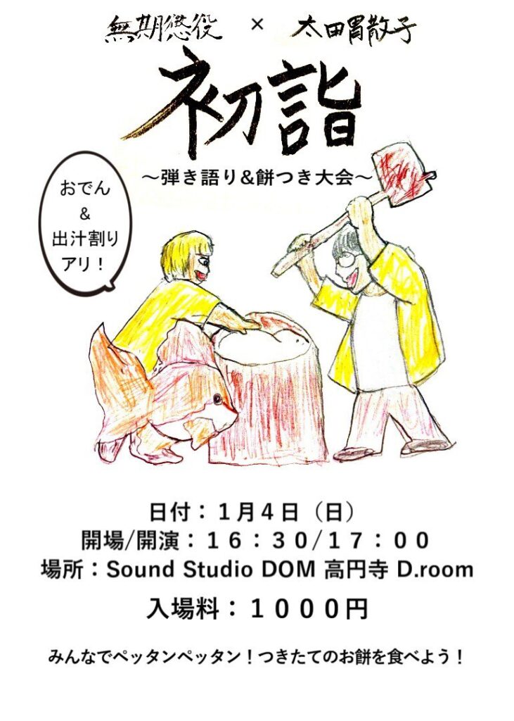 [information] 無期懲役×太田胃散子 pre. 【初詣 vol.2】 2026.01.04(日) 高円寺DOMスタジオ D room 16:30/17:00 出演: 叶芽フウカ しらい(Ramblamp) 森奎太朗(AUBREI) 変身願望(衝子にメアリーズ) にごぢゅー 秋元(雨上がりのあおいちゃん)&mei 無期懲役(トキワの森 …