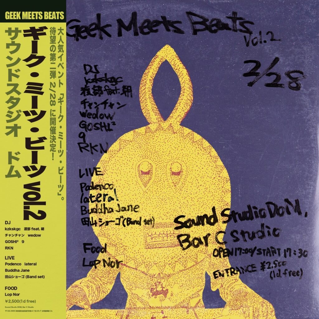 [information] Geek Meets Beats vol.2 待望の第二弾 2/28に開催決定! 【日時】 2月28日 OPEN 17:00 START 17:30 【出演】 ・DJ kzkskgc 渡部feat.朝 チャンチャン wedow GOSHI2 9 RKN・BAND lateral Podenco B …